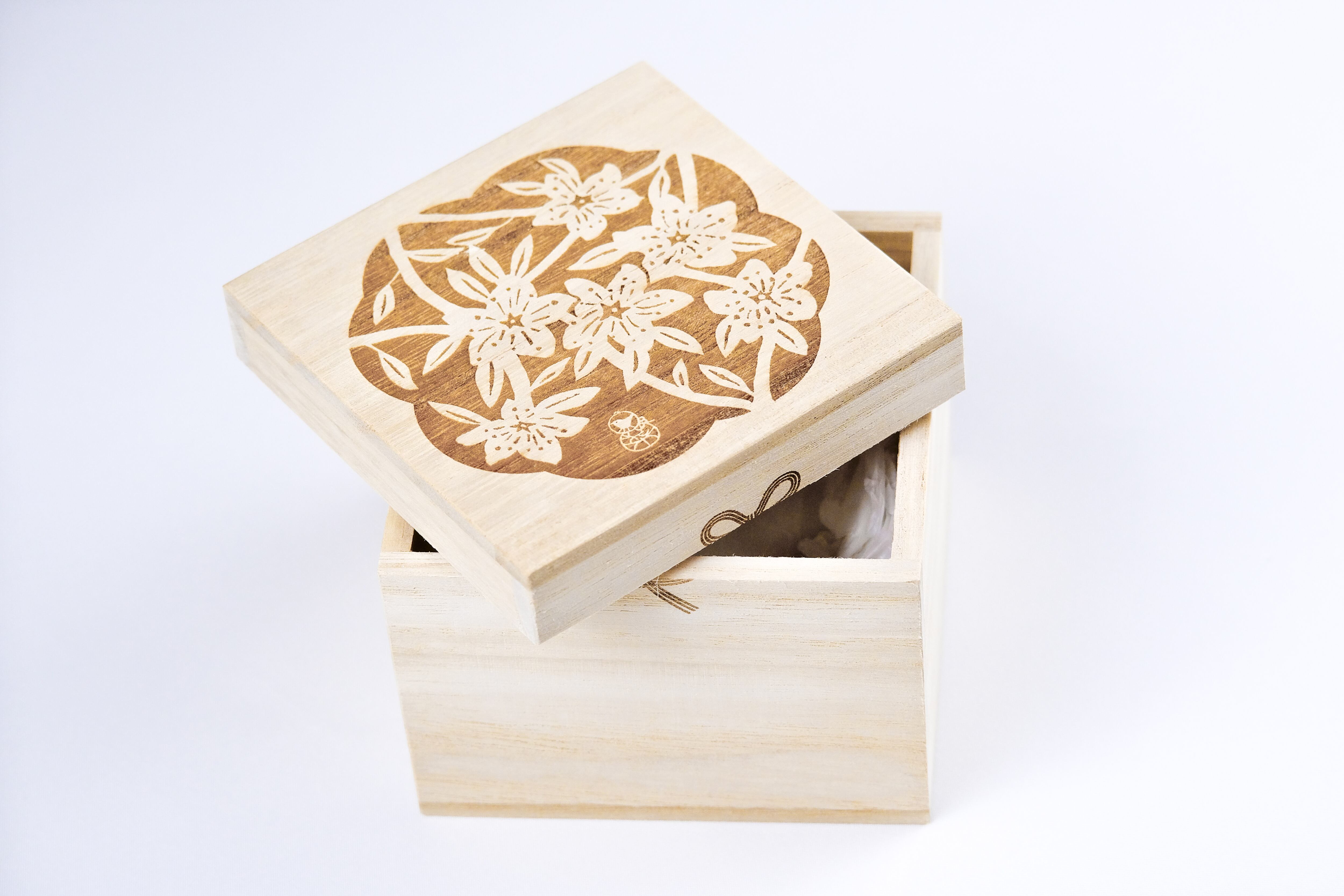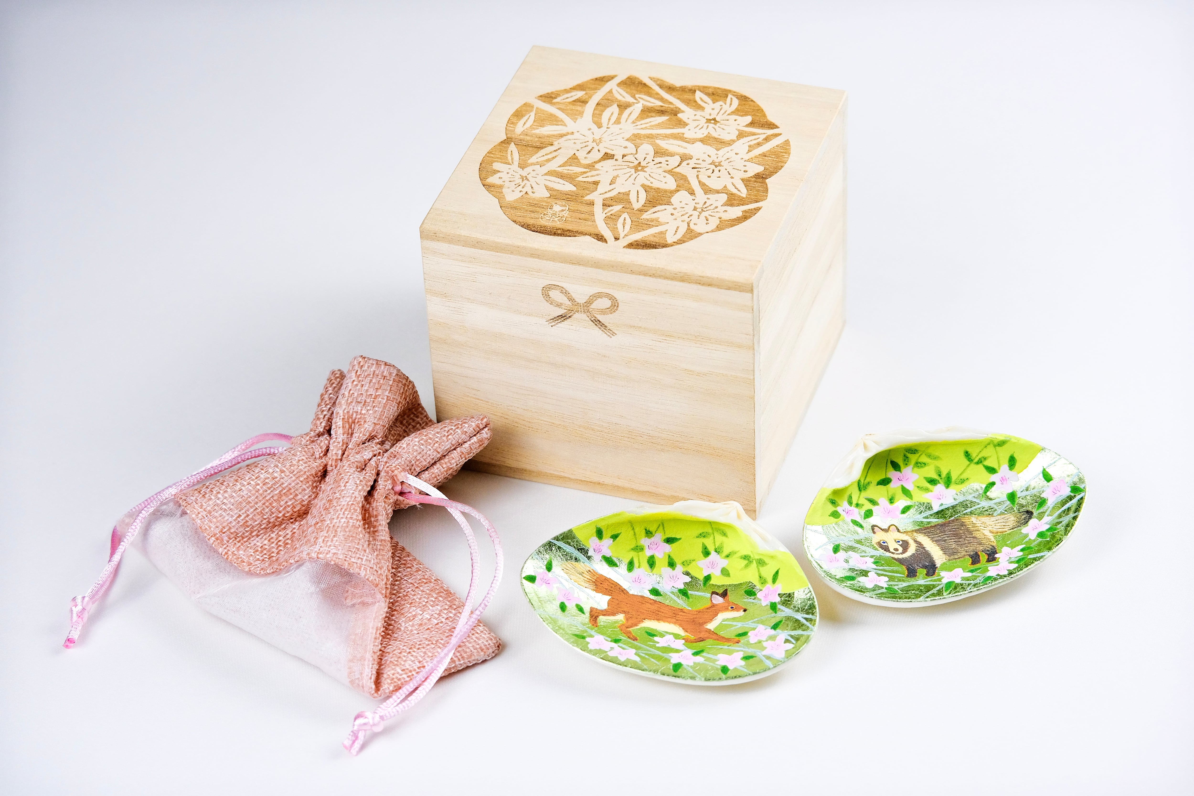 布袋とオリジナルデザインの桐箱付きでお届けいたします。