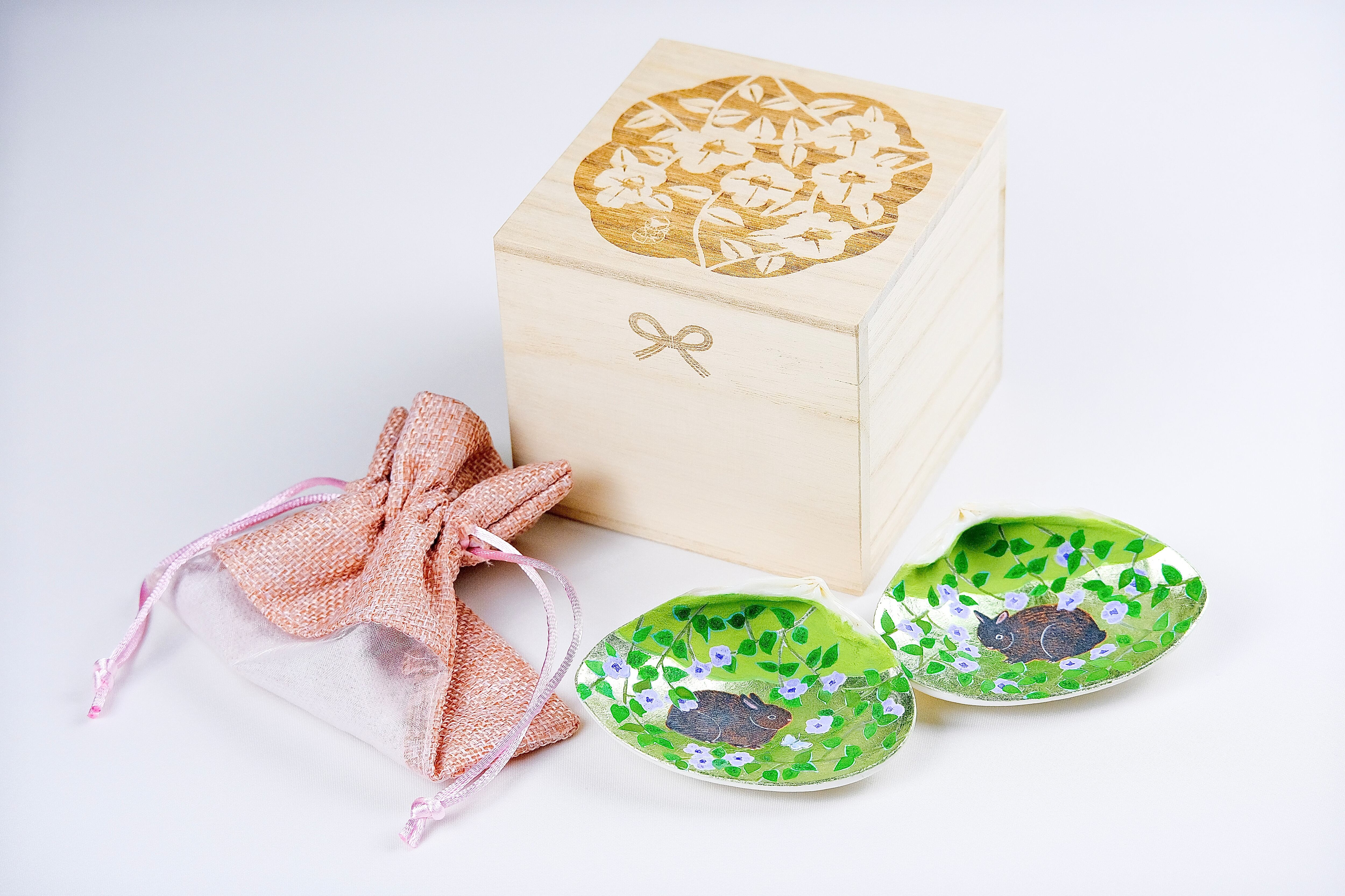 平安時代の遊びであった貝合わせを、飾って楽しんで頂ける作品にしました。