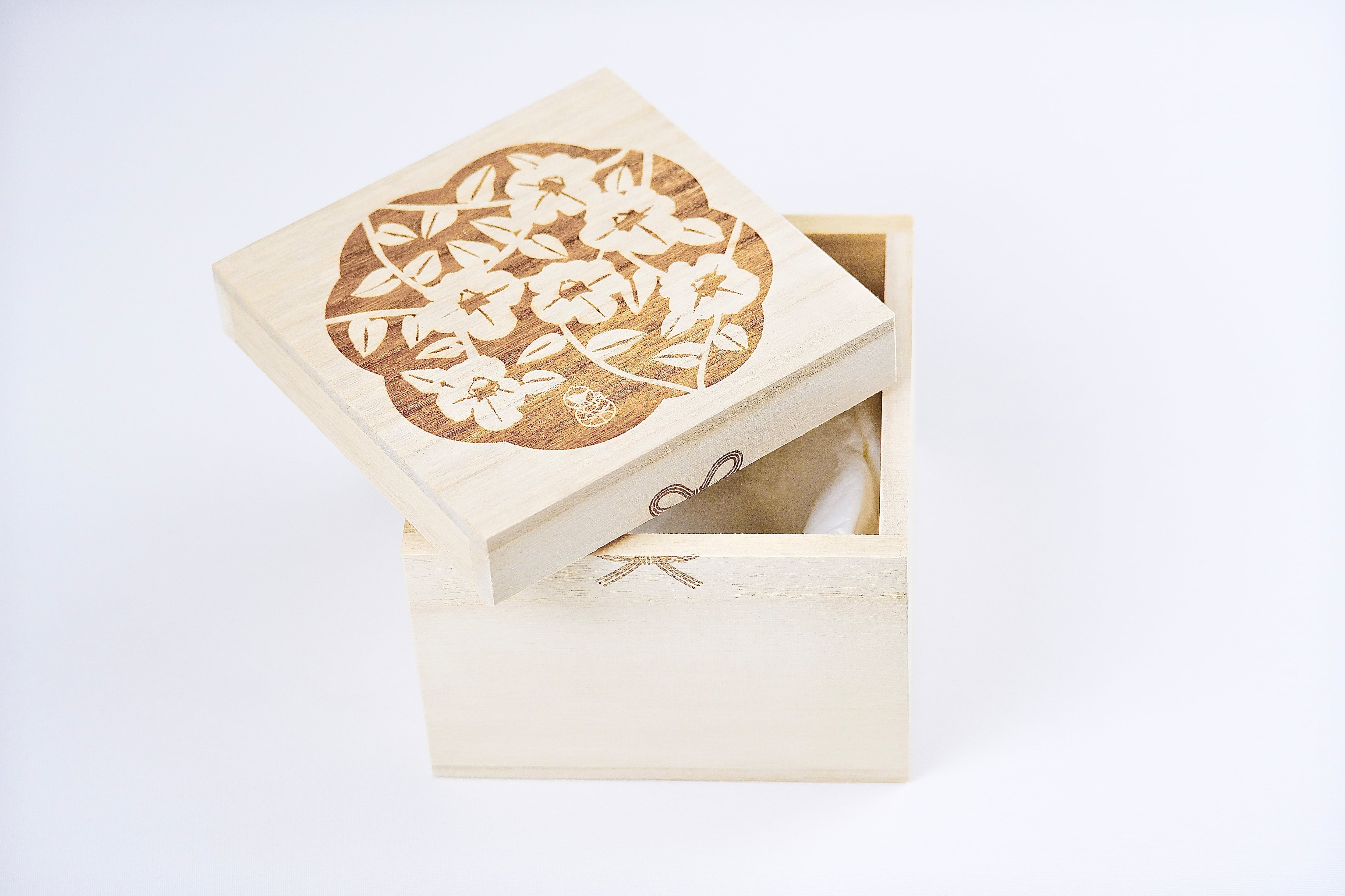 布袋とオリジナルデザインの桐箱付きでお届けいたします。