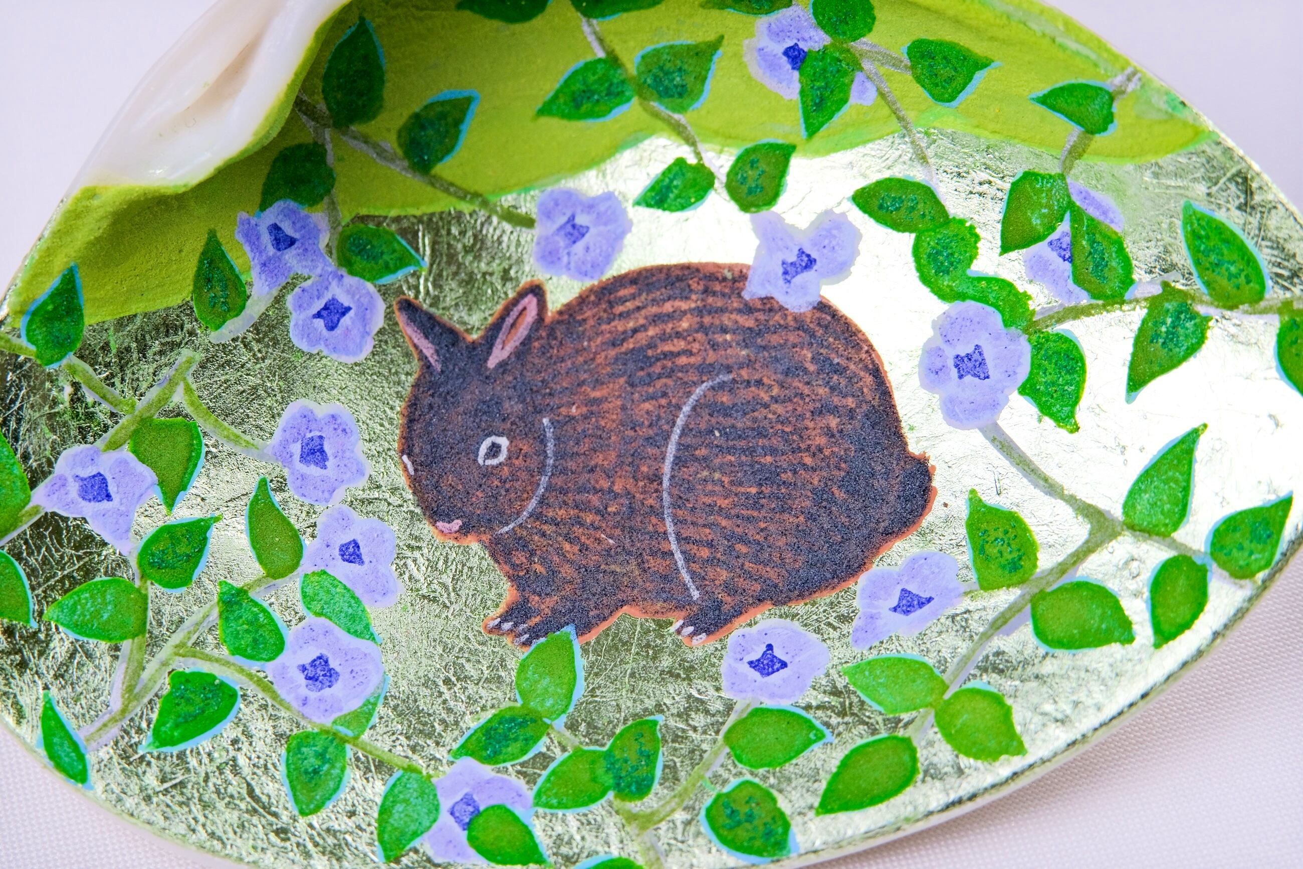奄美大島に生息するアマミノクロウサギと、同じく奄美大島の植物であるツルウリクサを描きました。