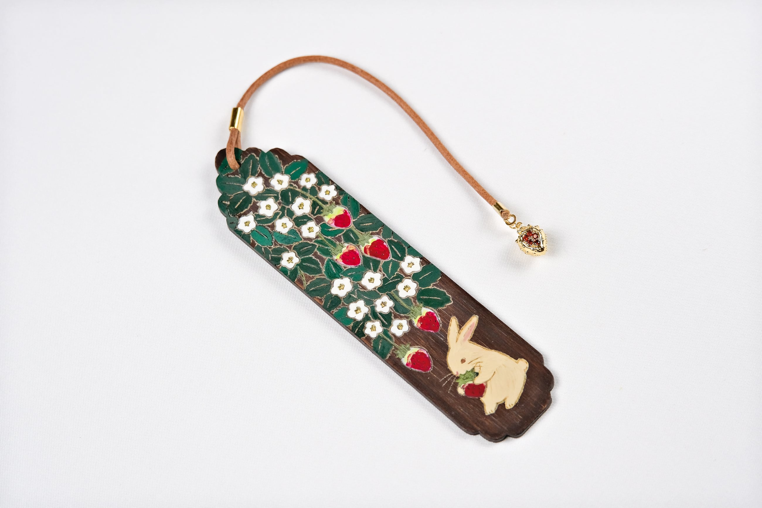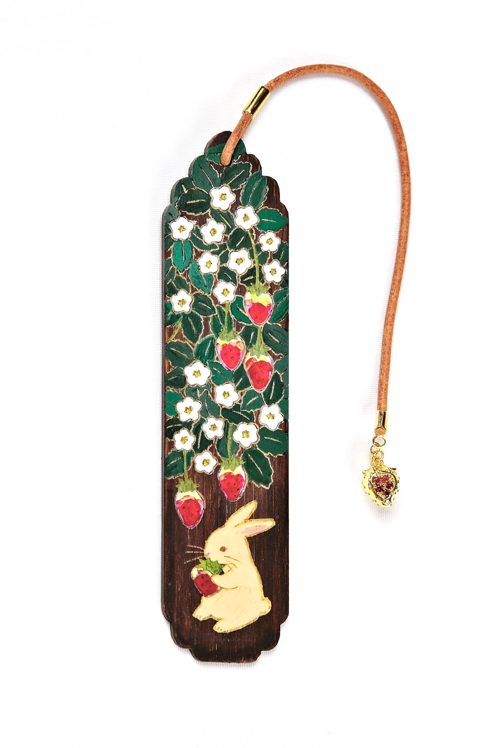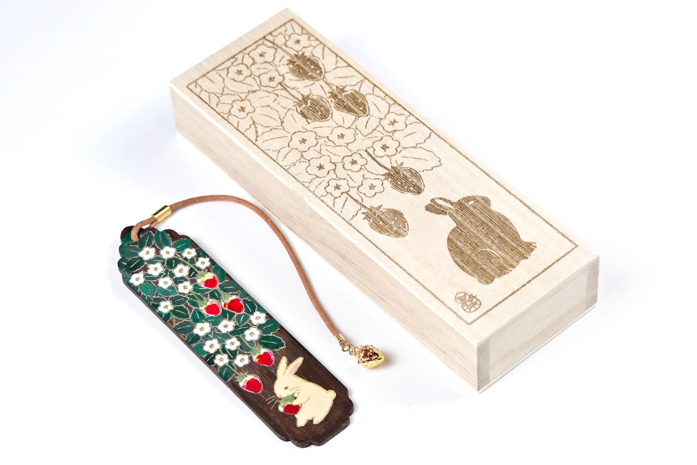【手描きブックマーク】うさぎといちご(オリジナル桐箱付き)