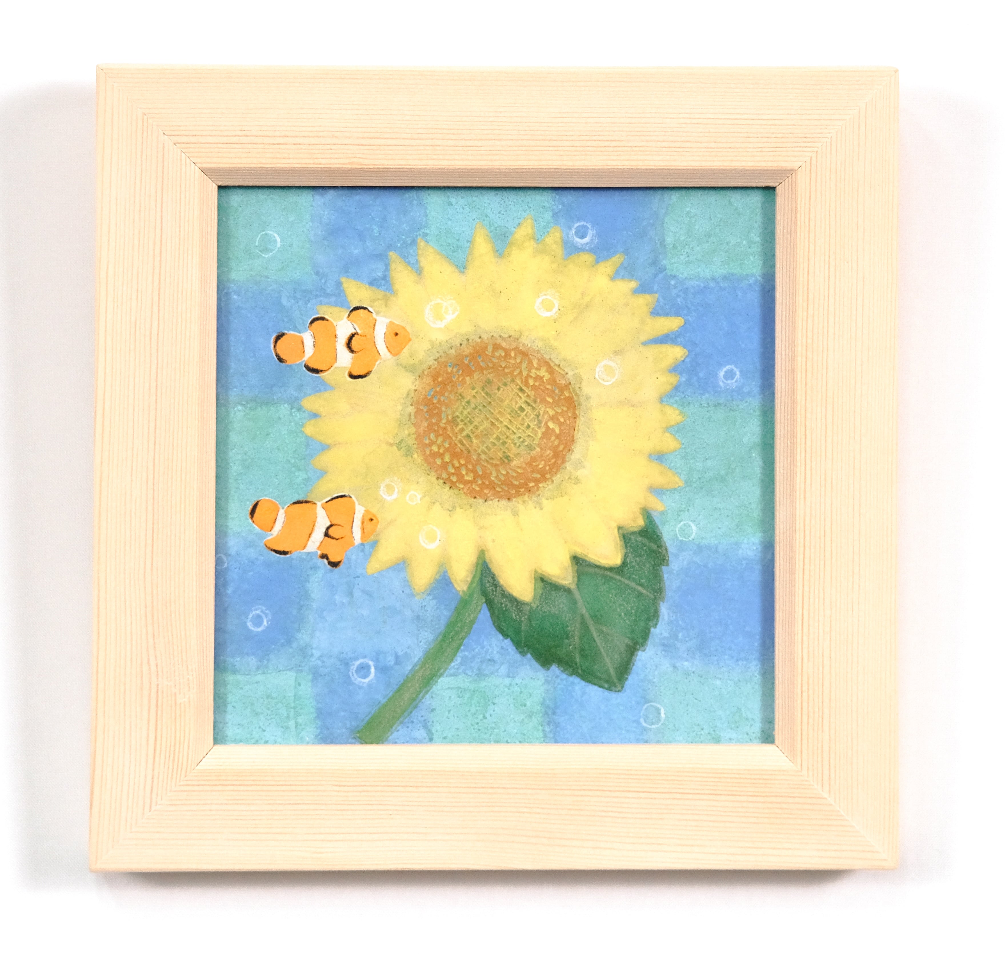 カクレクマノミとひまわりを、夏色の背景に組み合わせました。