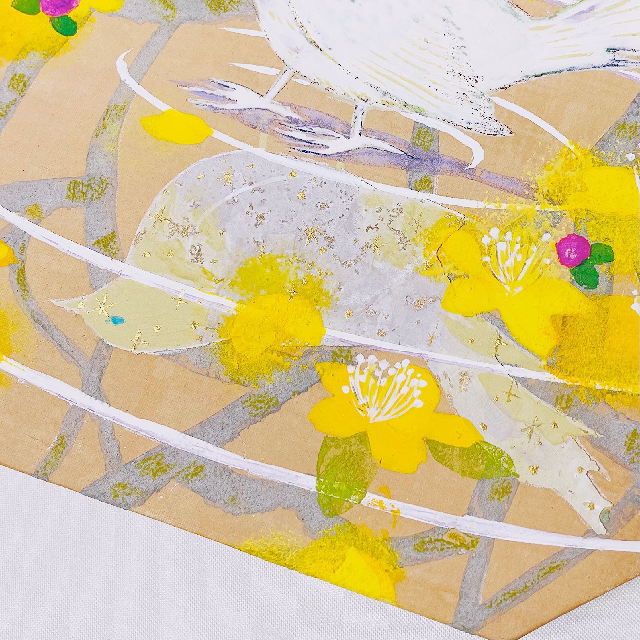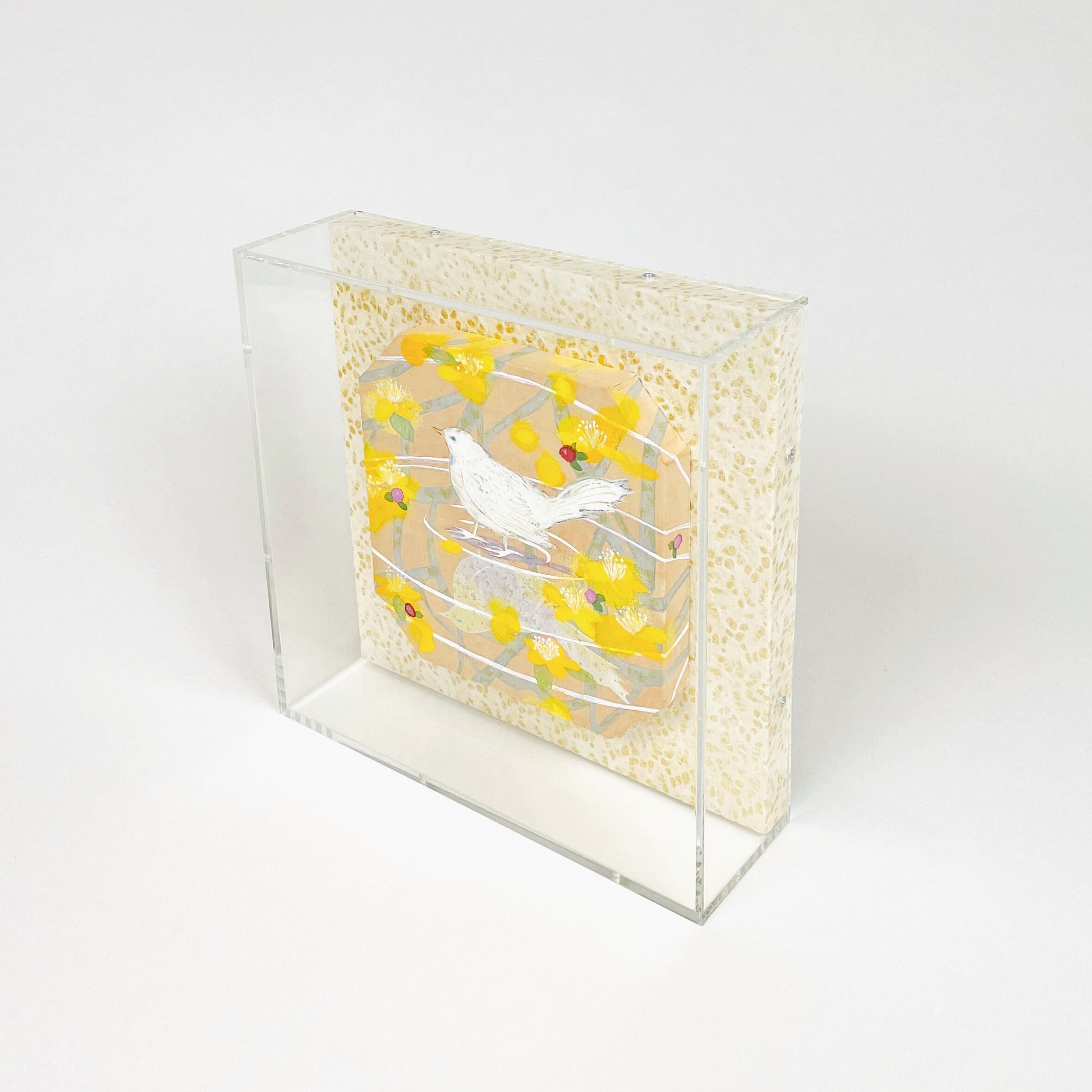 Painting "Glittering Mizukage" The flower language of Hypericum is glitter. Light is lit in the heart of the bird that resonates with the flower. I draw each brush stroke seriously and carefully. Why not decorate your home with the unique presence and sparkle of a one-of-a-kind item? The frame is an acrylic box frame with UV cut specifications. It will be delivered in a frame, so it can be displayed immediately. Japanese paper is used for the mat part. There is a string attached to the back, so it can be hung on the wall, but it is also 6 cm thick so it can be displayed on a wall. I will put it in a yellow bag and a box and send it in careful packaging. We also recommend it as a gift for your loved ones. ▶︎Materials used Japanese painting materials Pastel ▶︎Picture size 13 x 13 cm (Signature is on the side of the picture) ▶︎Forehead size: 19 x 19 cm Thickness: 6 cm After payment is confirmed, it will be shipped within 5 days. I will send it with a box and a yellow bag.