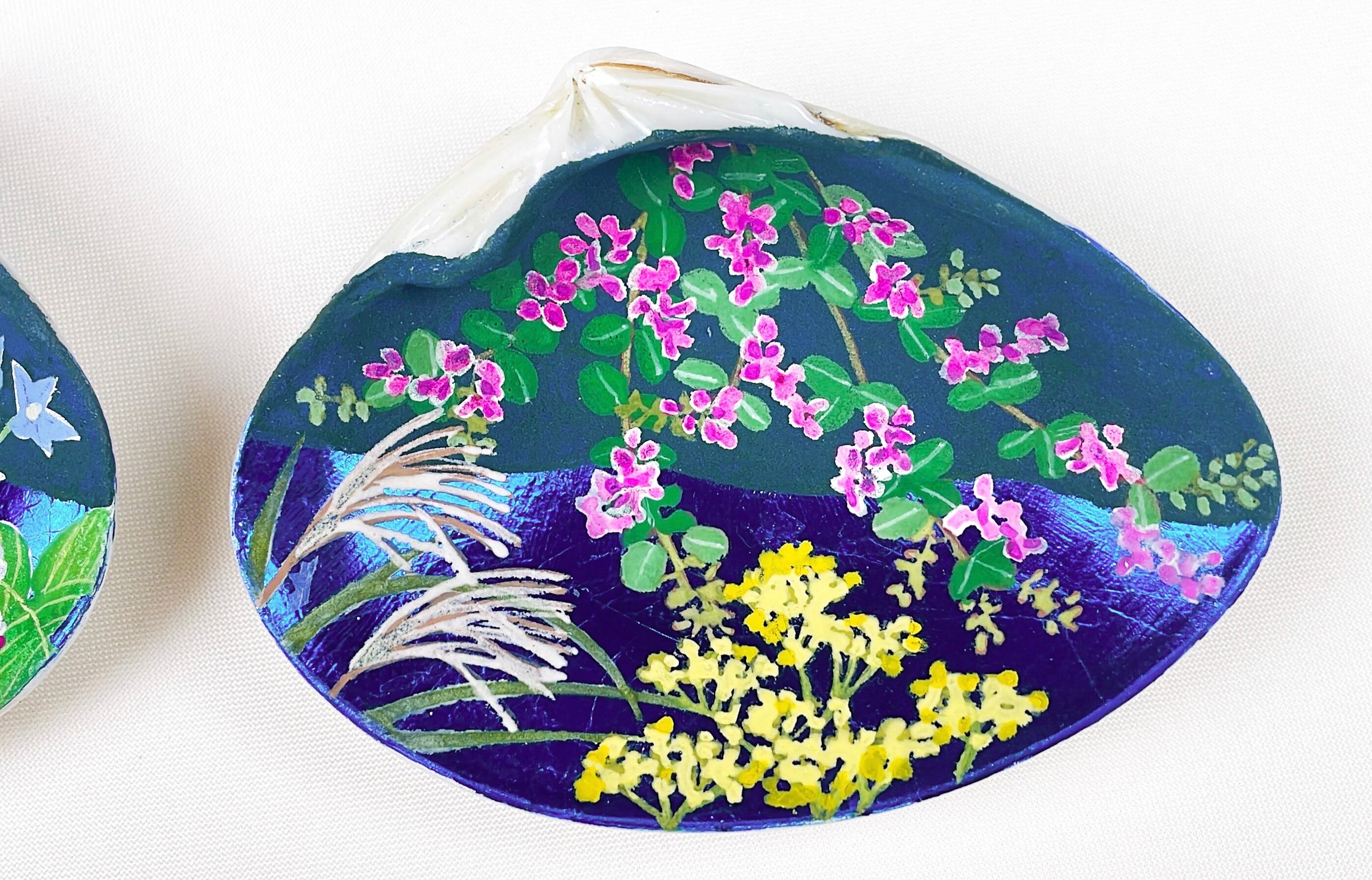 秋の七草を描いた貝合わせができました。
